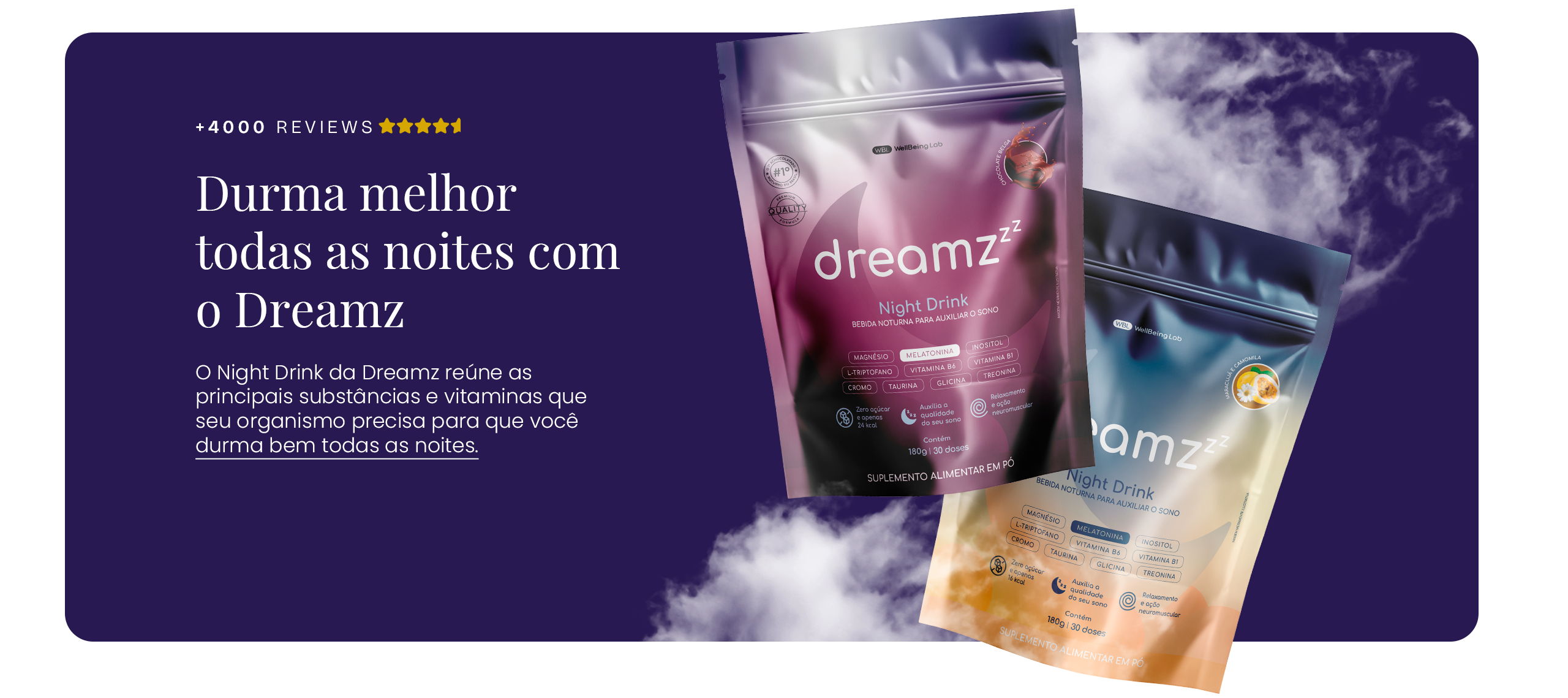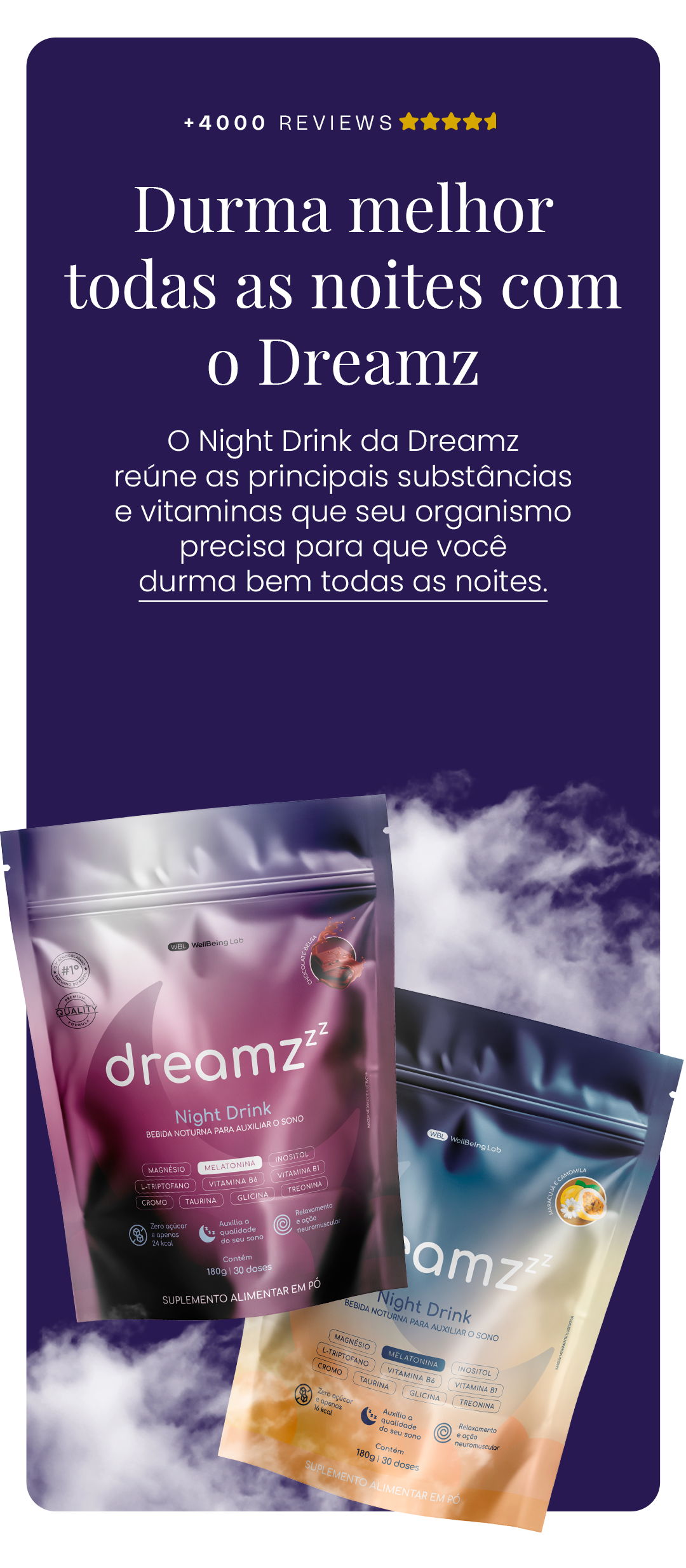 O COMPOSTO NOTURNO MAIS COMPLETO DO BRASIL, DESENVOLVIDO COM 10 SUBSTÂNCIAS NATURAIS PARA UMA NOITE DE SONO PERFEITA.